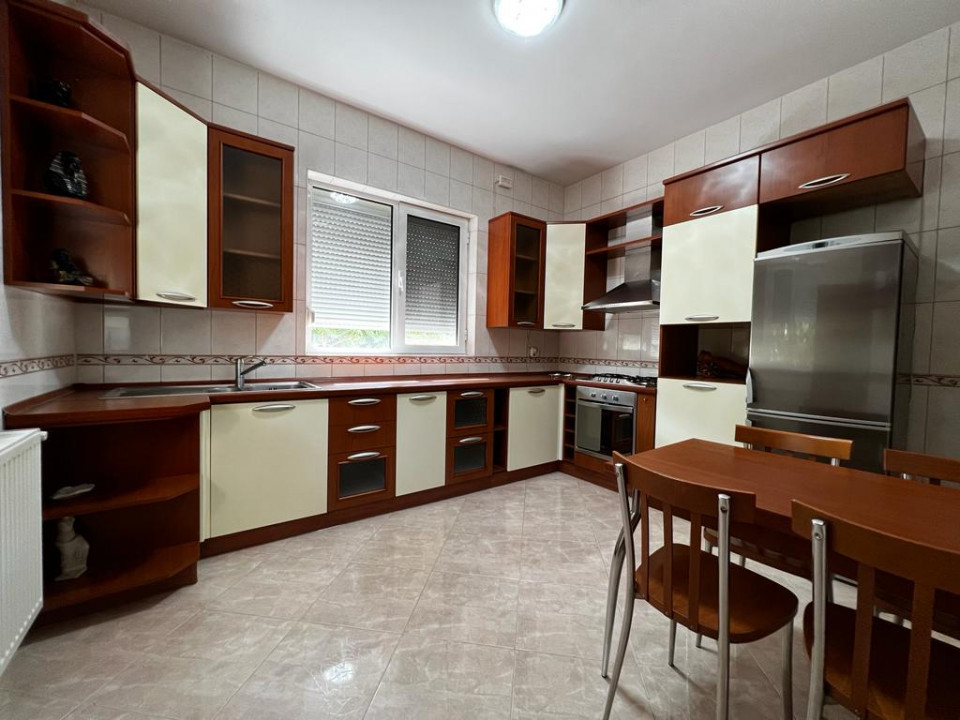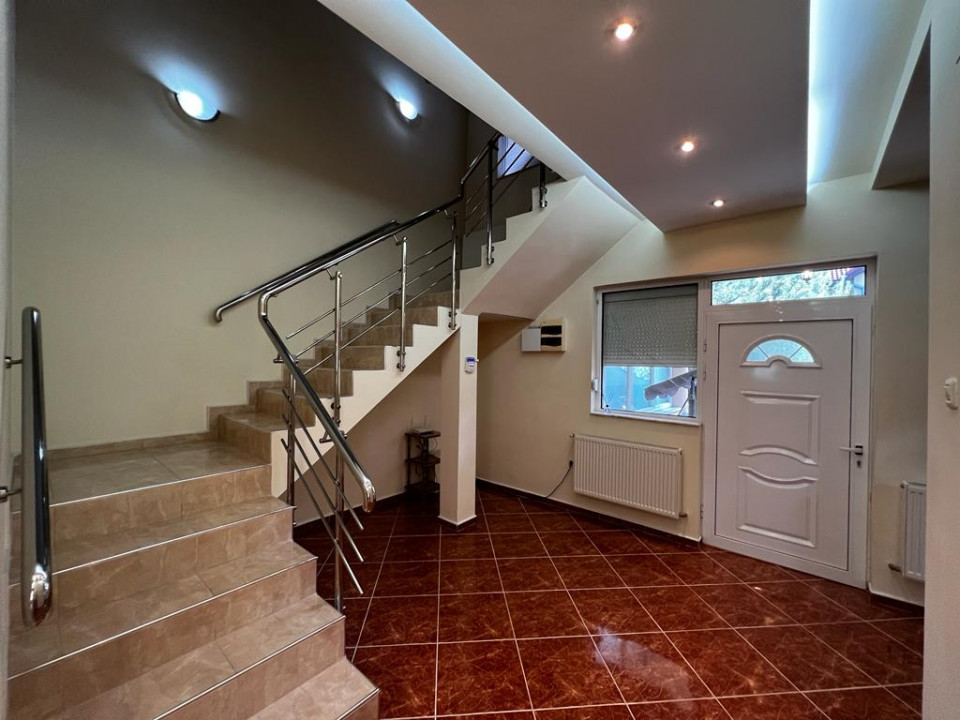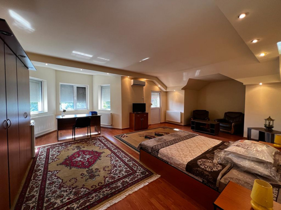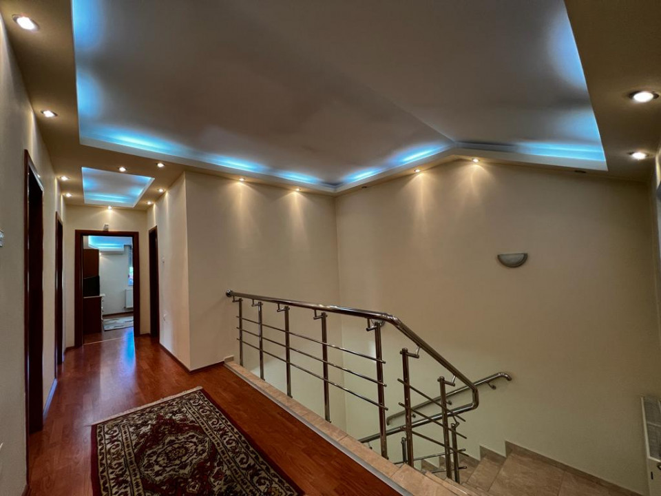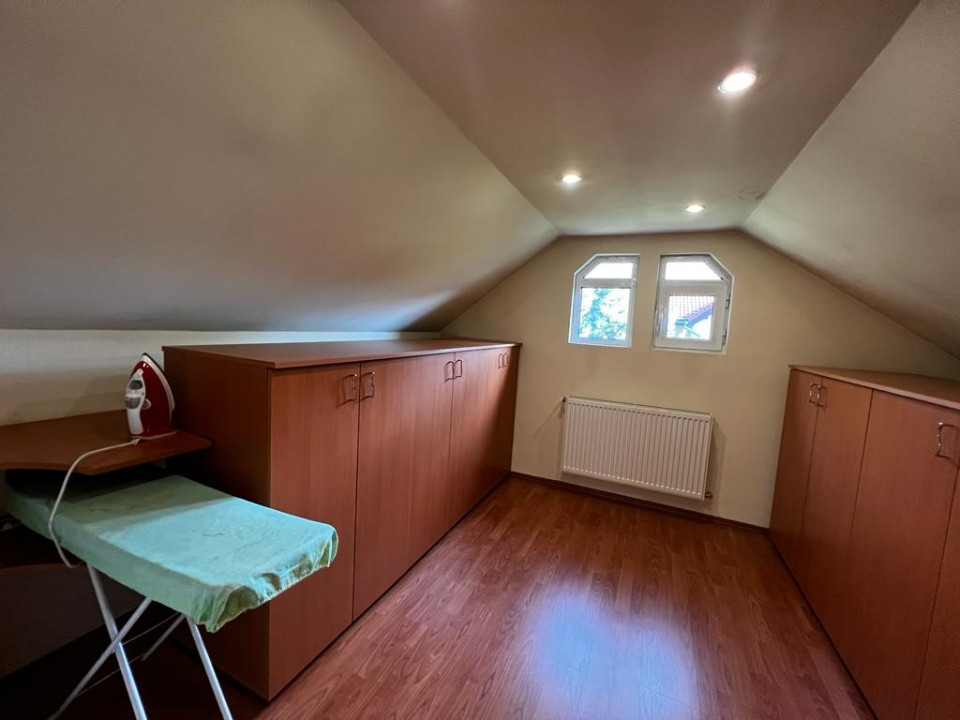 Casa de închiriat situată in Pipera, P+1, dispune de un demisol de dimensiunea unei camere care este zona tehnica, dar poate fi folosită si pentru depozitare..